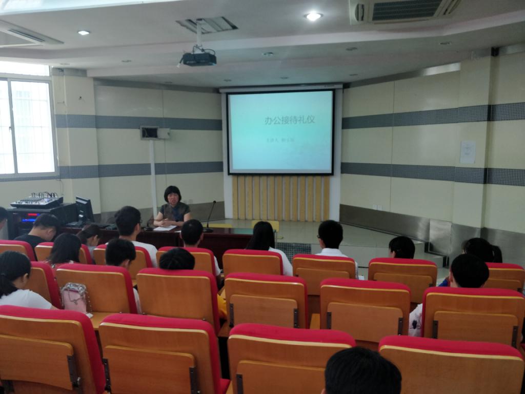 培训班邀请窦红平、靳玉琼、童晓红三位专家为志愿者们做针对性培训,三位老师分别从公文写作、办公礼仪、PPT制作等方面进行了详细的讲解培训,确保志愿者顺利有效的开展各项工作。三位老师精彩的授课赢得了学生们阵阵掌声。