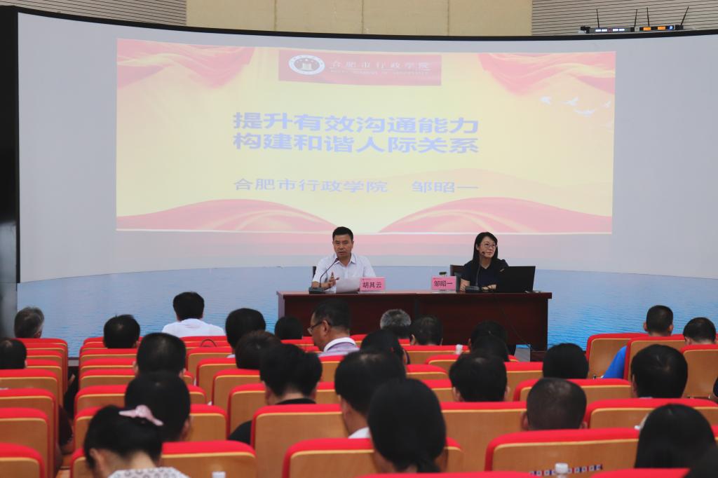 为贯彻落实习近平总书记系列重要讲话精神,扎实推进“两学一做”学习教育常态化制度化建设,切实提高我院干部的综合素质、管理能力和执行力,努力建设一支学习型干部队伍,8月28日,在图书馆二楼学术报告厅,学校举办了《提升有效沟通能力 构建和谐人际关系》的专题讲座。各党总支、党支部委员,以及部分中青年干部(含部分后备干部)参加了本次讲座学习。讲座由校党委副书记胡其云同志主持。