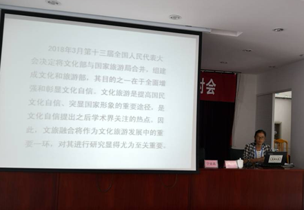 我校王传芸老师随后作了《有巢氏文化与旅游产业融合发展研究》的专题报告,主要从有巢氏文化与旅游产业融合现、存在问题分析、结合地方旅游业现状,提出有巢氏文化与旅游产业融合发展的对策。观点新颖,操作性强,得到与会专家高度评价。