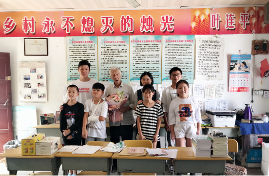 在第34个教师节来临之际,我校“摘星”志愿实践队成员在杨晨老师的带领下重返暑期社会实践之地——和县乌江卜陈留守儿童之家,探访91岁高龄仍执教一线的叶连平老师。