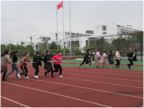 在“旱地赛龙舟”的赛场上,同学们跃跃欲试,比赛的哨声吹响时,口号声在操场上跌宕起伏;操场那边“揭竿而起”更是火爆极了,笑声欢呼声不断,男女同学一齐配合,越过阻碍,奔向胜利;在“无敌风火轮”那里,参赛队员们小心翼翼,紧张刺激地完成一次又一次的合作;在拉拉队的呐喊助威下,“三人一行”的队员们不甘示弱,斗智斗勇,向着目标跨越。