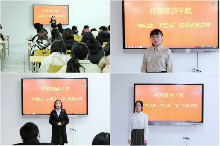 本次比赛是该院深入开展宪法宣传教育系列活动之一,据悉,该院还通过主题班会、知识竞赛等形式普及宪法知识,弘扬宪法精神,让宪法走进校园、融入大学生日常生活,不断强化广大师生对于宪法的思想认同、情感认同和事实认同,让全院师生成为宪法的忠实崇尚者、自觉遵守者、坚定捍卫者。(供稿:经贸旅游学院 编辑:朱鹏飞)
