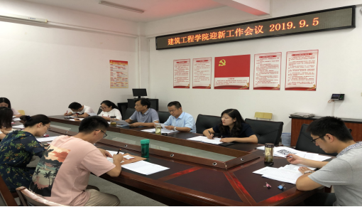 9月5日下午,建筑工程学院召开2019级辅导员班主任迎新工作会议,会议由建筑工程学院综合办主任施芳芳主持。