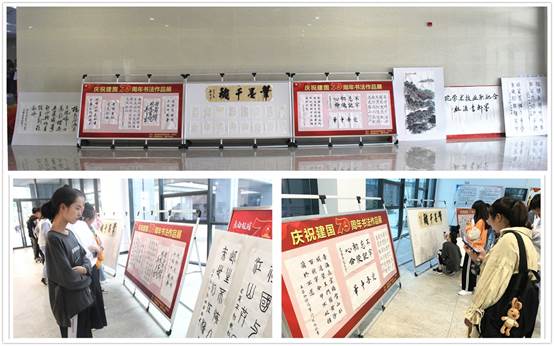 9月28日后,书画作品展移至教学楼汇智楼一楼大厅展出,让许多师生在课余时间在欣赏书画艺术美的同时,也放松了身心,不少同学还举起手机拍照留念。