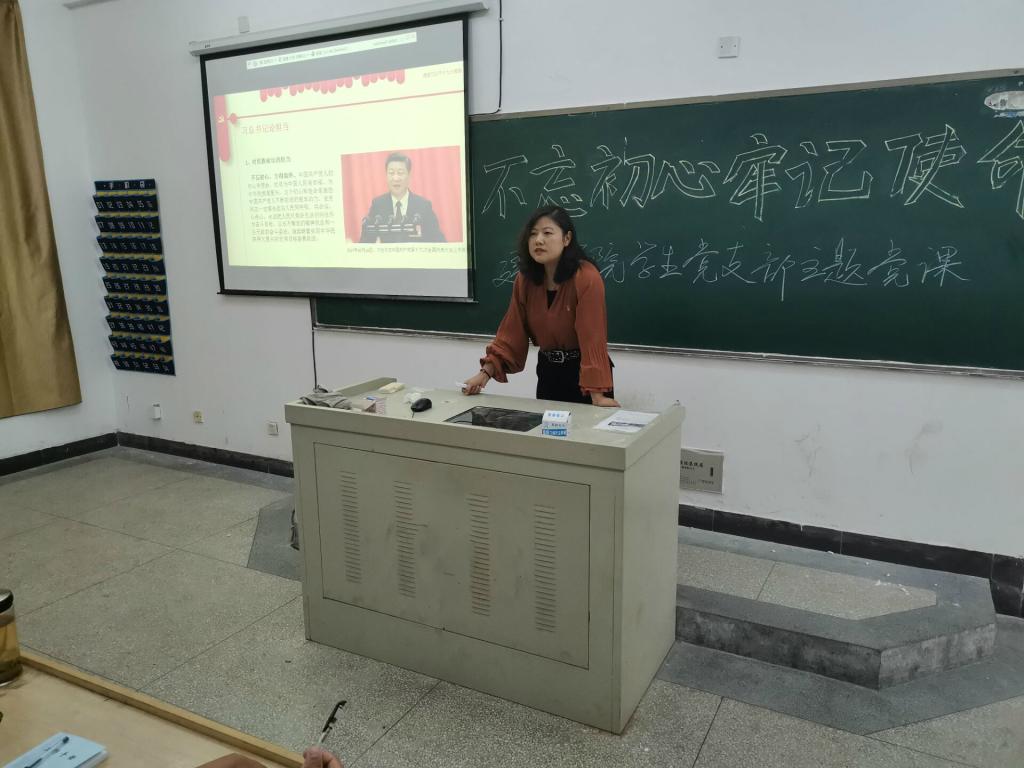 根据学校“不忘初心、牢记使命”主题教育工作部署和建筑工程学院党总支工作安排,10月23日下午,建筑工程学院学生党支部在教学楼B201教室开展主题党课活动。学生党支部书记施芳芳以“守初心、担使命”为主题为支部全体党员和入党积极分子讲授了一堂形象生动、令人印象深刻的党课。该院党总支书记宁业群以普通党员身份参加了支部的学习活动。
