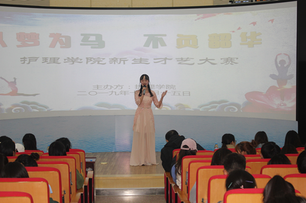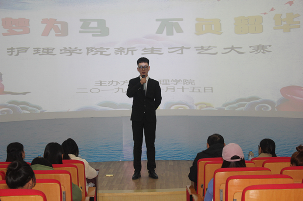 青春弱冠展风采,合职新生绘芳华。为了给新生提供展示自我的舞台,彰显青春活力与个性,11月15日晚,护理学院第二届新生才艺大赛在鼓山校区图书馆二楼报告厅举行。本次比赛由校报编辑部王启俊老师、校团委王瑶老师和护理学院张丽、刘惠、许健老师担任评委组,护理学院党总支书记张明和200余名学生现场观看了十位选手的精彩表演。