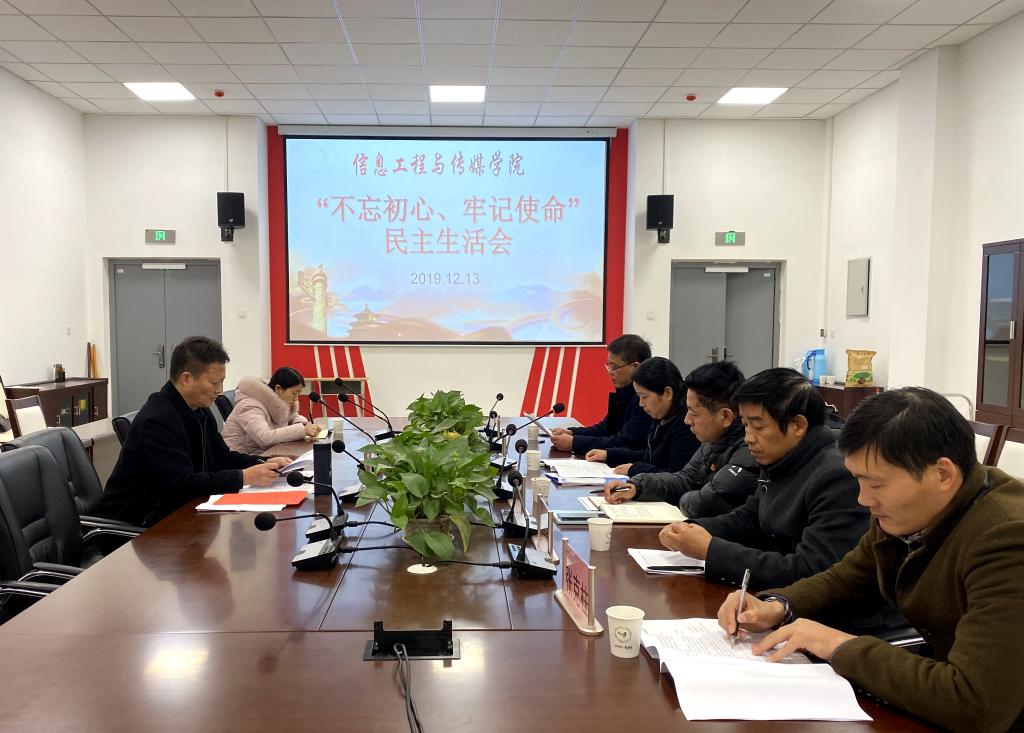 根据校党委《关于在“不忘初心、牢记使命”主题教育中召开党总支专题民主生活会和党支部专题组织生活会、民主评议党员的通知》文件精神,信息工程与传媒学院党总支于12月13日在信息楼党员活动室成功召开党总支班子“不忘初心、牢记使命”专题民主生活会。第六督导组组长、校纪委书记陶宁,宣传部沈婉婉老师到会指导。会议由该院党总支书记李红雨主持,该院党总支全体委员参加会议。
