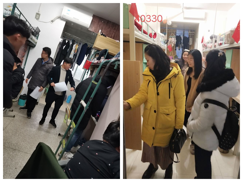 临近期末,学生公寓衣被等易燃物品堆放数量多,少数学生私接电线违规使用电器现象有所抬头,为有力扼制安全隐患的滋生和排除隐患,有效保障学生的财产生命安全,,12月23日下午,汽车运用与轨道交通学院党总支组织该院全体专兼职辅导员(班主任)对两个校区学生公寓安全事项进行专项突击检查。