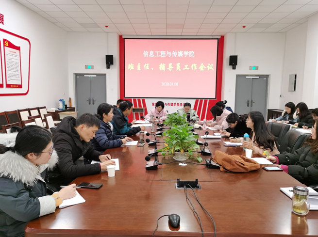 为做好期末学生管理工作,充分发挥辅导员、班主任在教育、管理和服务学生中的主体作用,按照学期工作计划安排,1月8日中午,信息工程与传媒学院在信息楼一楼会议室召开在校18和19级班主任辅导员工作会议,会议由该院党总支副书记刘泽发主持。