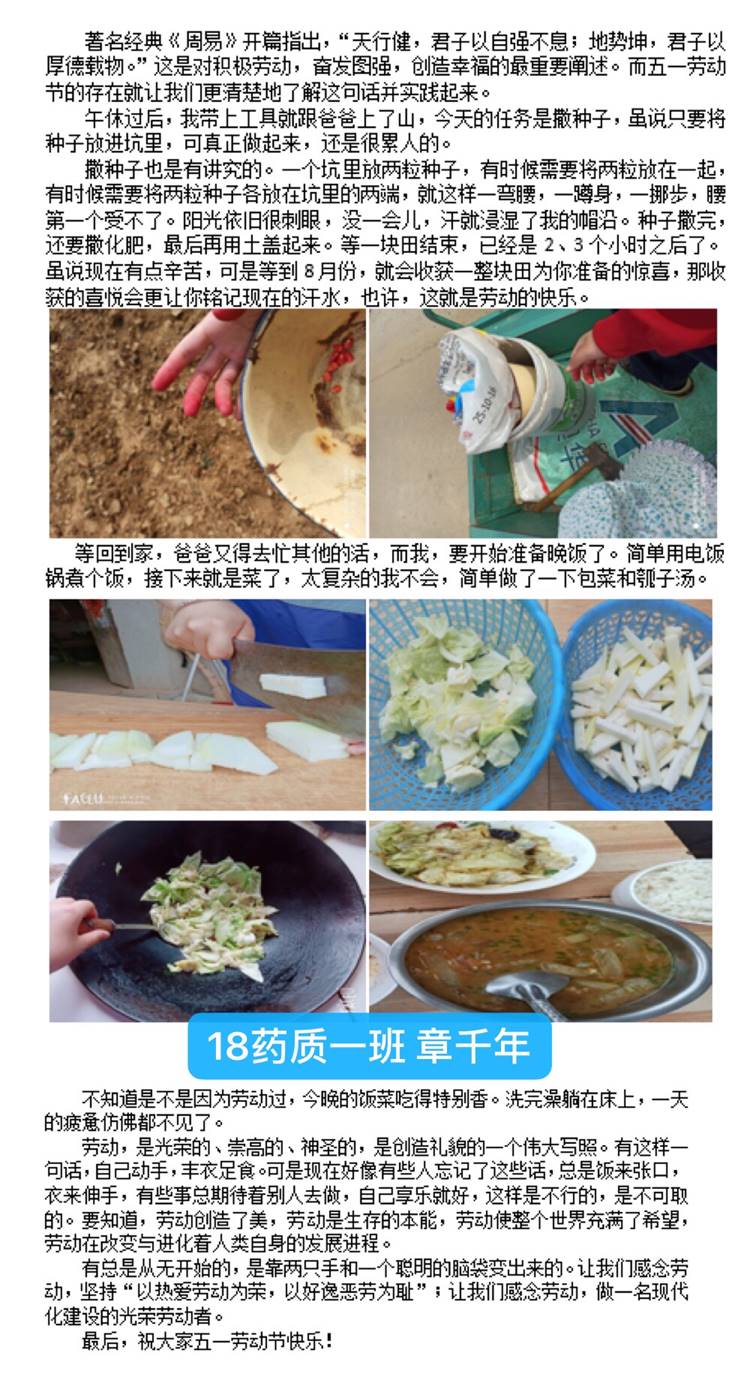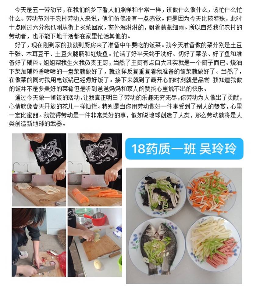 节日期间,活动开展得如火如荼,该院大学生通过为家人做一顿饭、全家大扫除、下地干农活等多种方式来炒热劳动节日的气氛。节后,收获了近百份学生劳动材料。经层层评选,最终我院诞生了十佳劳动之星!