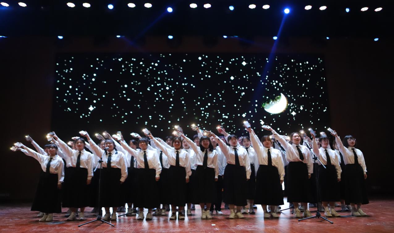 20会计4班全体成员为大家带来大合唱《夜空中最亮的星》,歌声中饱含着同学铿锵自信和对未来的无限希望,绽放着青春与梦想的光芒。