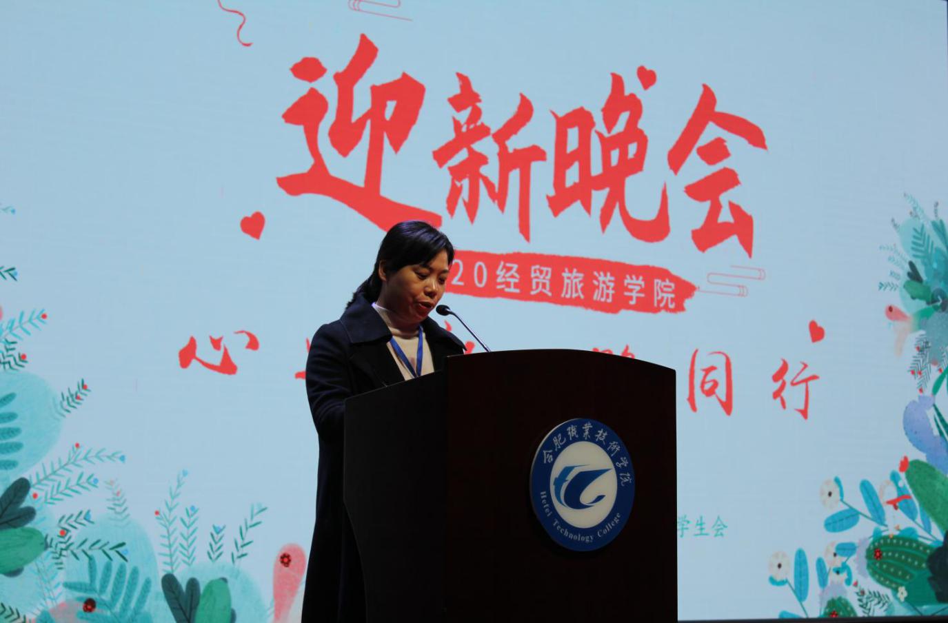 晚会在精心制作的开场视频中拉开序幕,激昂的背景音乐为晚会的进行营造了热烈的气氛。晚会伊始,经贸旅游学院院长赵红代表学院致辞,欢迎新同学加入经贸旅游学院这个大家庭,激励大家在以后积极进取,共创美好未来。