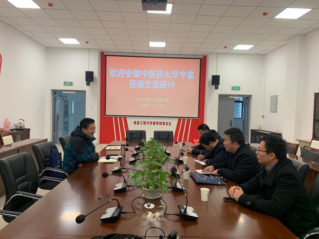 日前,全国第十五届智能车大赛安徽省赛和国赛在我校成功举办,安徽中医药大学作为第十六届智能车大赛安徽赛区承办院校于12月10日来我校开展调研交流。安徽中医药大学教务处副处长尹刚、医药信息工程学院党委书记吴成海、医药信息工程学院院长阚红星一行在信息工程与传媒学院会议室召开座谈会。