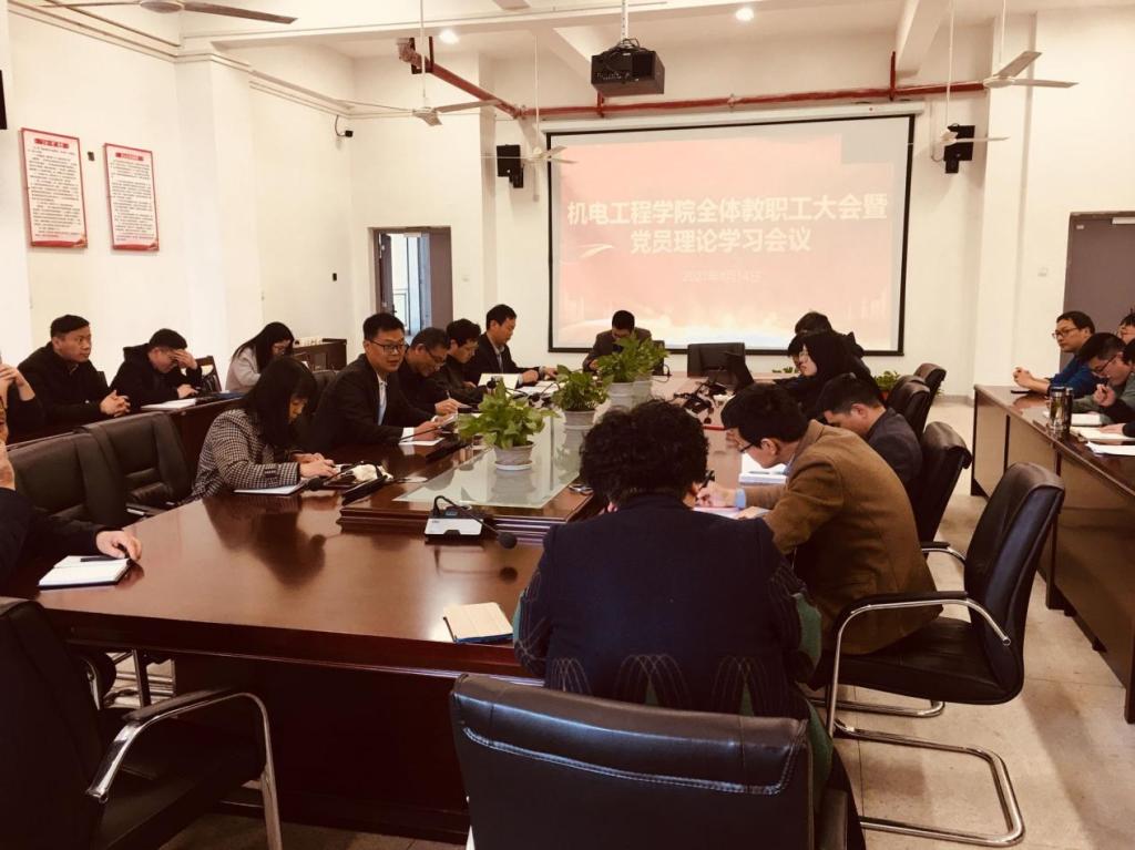 4月14日下午,机电工程学院在机电楼二楼会议室召开全体教职工大会暨四月份党员理论学习会议。校党委委员、副校长孙兴林及全体教职工参加会议,会议由该院党总支副书记(主持工作)王克勇主持。