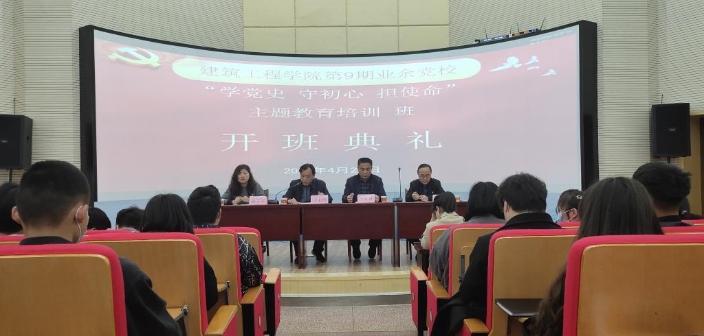 4月26日下午,建筑工程学院第9期业余党校“学党史 守初心 担使命”主题培训班开班典礼在鼓山校区图书馆2楼报告厅举行。该院党总支书记宁业群、院长范家茂、副院长魏永恒及学生党支部全体党员出席了本次开班典礼,共72名党员发展对象和147名入党积极分子参加了本期培训班,典礼由学生党支部书记施芳芳主持。