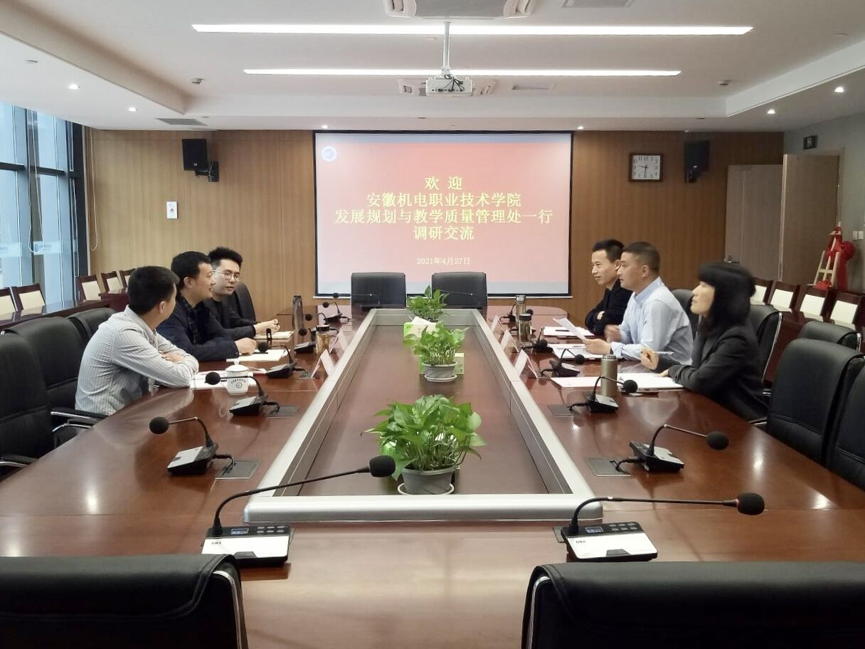 4月27日上午,安徽机电888集团学院发展规划处张国政处长一行到我校发展规划处就我校发展规划处机构运行情况、状态数据平台建设及《合肥现代职业教育》办刊经验进行调研交流。我校发展规划处处长方鲁兵在汇心湖校区行政楼525会议室接待一行,发展规划处相关科室人员参加。