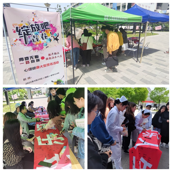 “青春无悔,一路向前,敞开胸怀,拥抱快乐人生。”4月29日中午,“我爱我——祝福、成长、共进”系列活动之心理健康主题签名活动在汇心湖校区食堂门口和鼓山校区第一食堂门口同时同步进行。