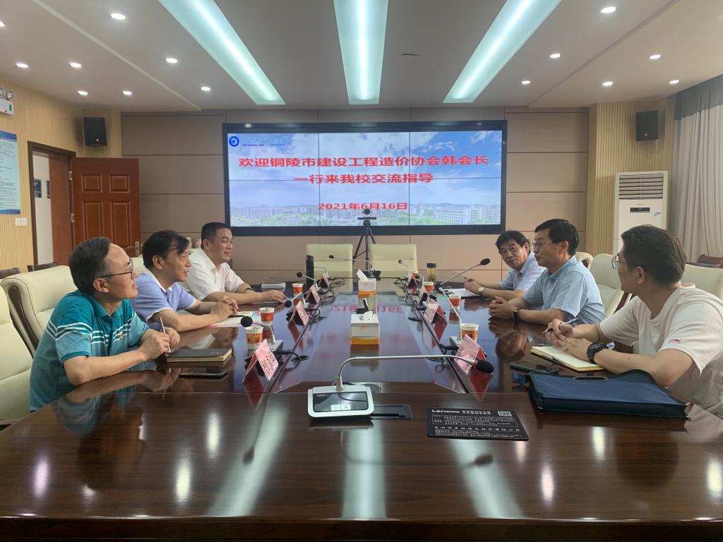 6月17日下午,铜陵市建设工程造价协会会长韩长发、秘书长孙吉根等一行来我校考察交流,韩长发一行首先参观了校内建筑实训工厂,建筑工程学院党总支书记宁业群、院长范家茂、副院长魏永恒等接待了来访人员,随后双方于鼓山校区行政楼三楼会议室召开交流会议。