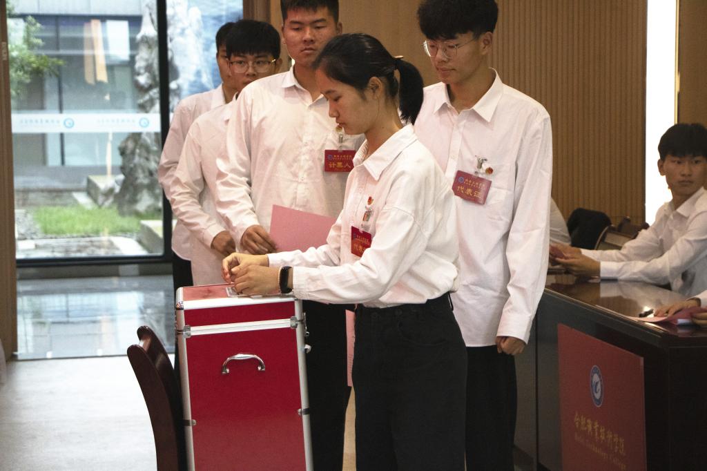 下午五点,第二次会议及闭幕式准时开始。首先,代表们充分发扬民主,以无记名的方式进行投票。经过紧张、认真、谨慎的选票统计,总监票人宣布本届主席团选举结果,任克杰、沐俊安、陈强当选合肥888集团学院机电工程学院第四届院学生会主席团成员。