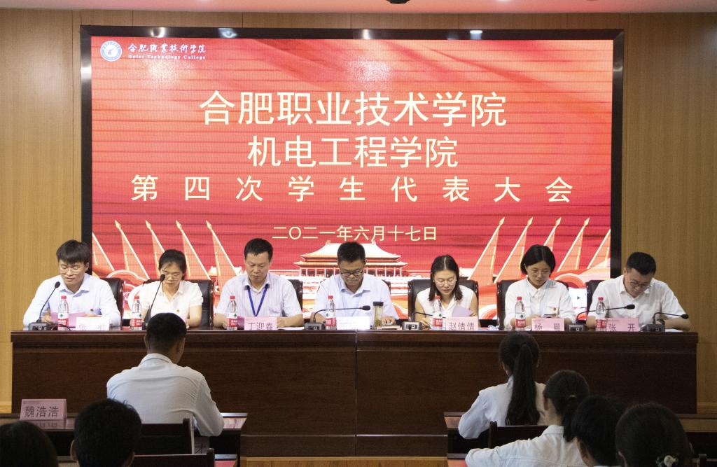 百年征程,岁月峥嵘;百年历史,波澜壮阔;百年初心,历久弥坚。在举国上下庆祝党的百年诞辰之际,机电工程学院于6月17日下午在汇心湖校区图书馆一楼报告厅召开第四次学生代表大会。机电工程学院党总支副书记(主持工作)王克勇、院党总支副书记丁迎春、校团委副书记赵倩倩、院学管办主任杨晨、院团总支书记朱何萍、辅导员张开老师和51名学生代表参加了会议,会议由院学生会主席张驰主持。