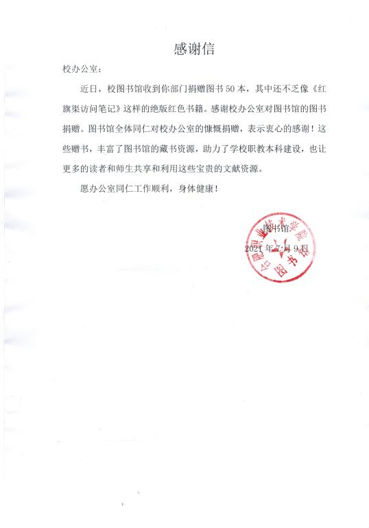 为进一步丰富学院图书馆馆藏,助力对学校文献资源建设,7月9日,办公室党支部向校图书馆捐赠图书。