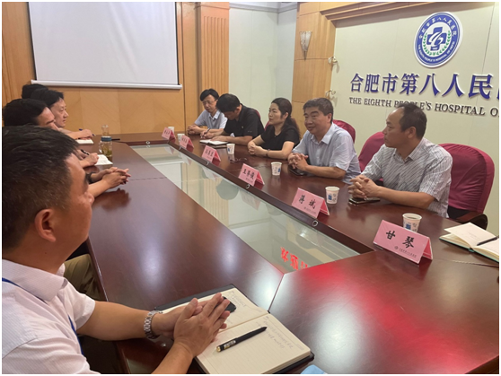7月20日,我校医学院院长王荣俊、副院长蒋斌、医学院党总支副书记孙美兰、副书记邹华兵、临床医学院教研室主任黄永平、综合管理办公室主任甘琴一行前往合肥市第八人民医院进行学习交流。合肥市第八人民医院党委书记蔡晓明、副书记副院长朱兴国、副院长杜勇、副院长倪秀武、纪委书记王正青及各职能部门领导参加了会议。