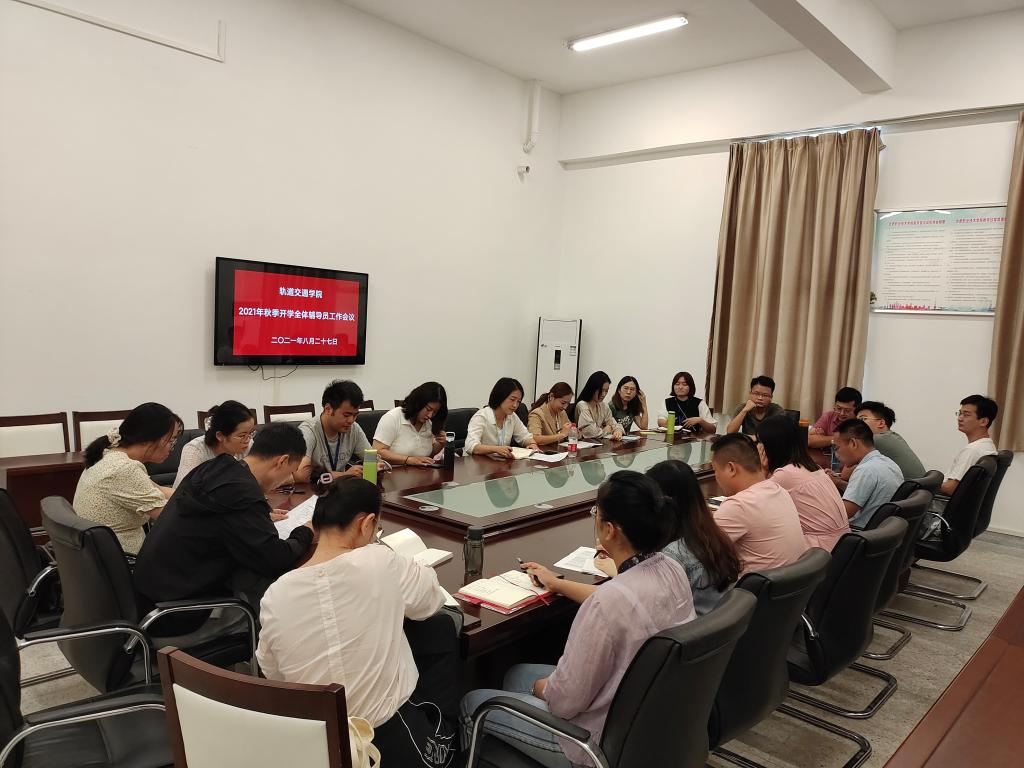 为深入贯彻安徽省落实疫情防控工作要求,切实做好轨道交通学院秋季学期开学工作,8月27日下午,轨道交通学院于轨道楼于210会议室召开新学期全体辅导员工作会议。