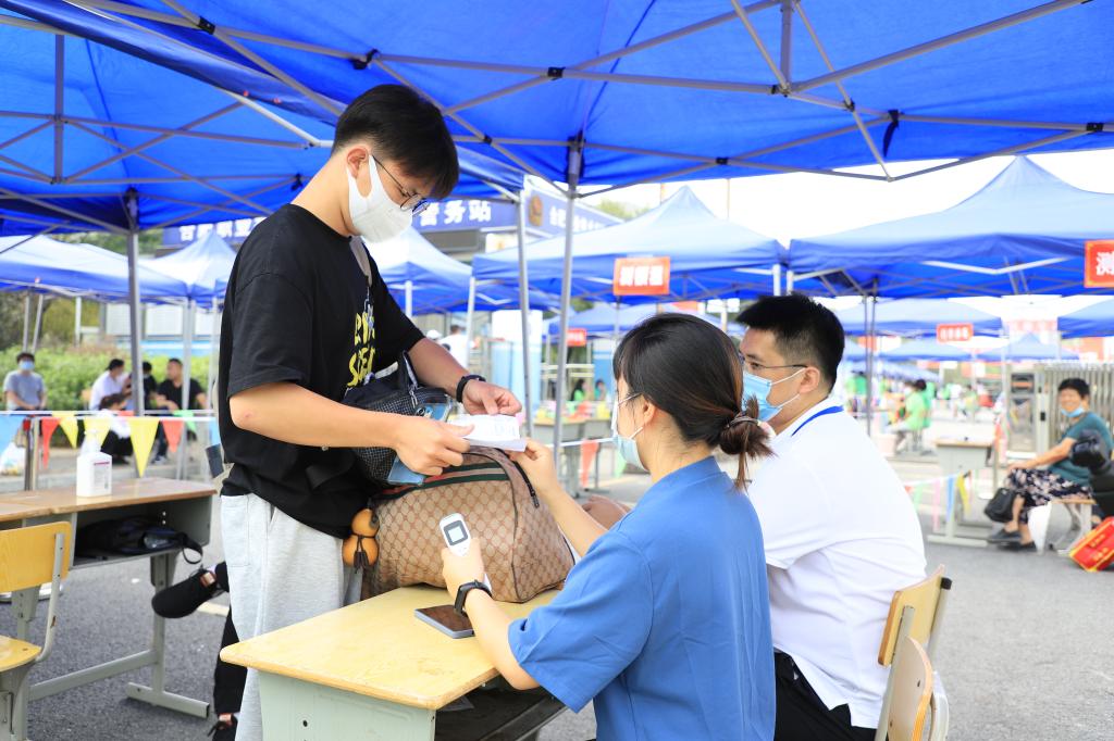 9月9日上午,生物工程学院2021级新生报到,学院迎新工作正式启动。生物工程学院党总支书记汪春荣、院长刘修树、副院长方丽波、党总支副书记周婷、21级全体新生辅导员在校北门东侧,迎接新生的到来。一线教职员工严格把控返校通道的第一道关卡,引导新生在入口处有序测量体温,核验健康码、新冠疫苗接种记录、14天行程卡以及48小时内核酸检测报告。