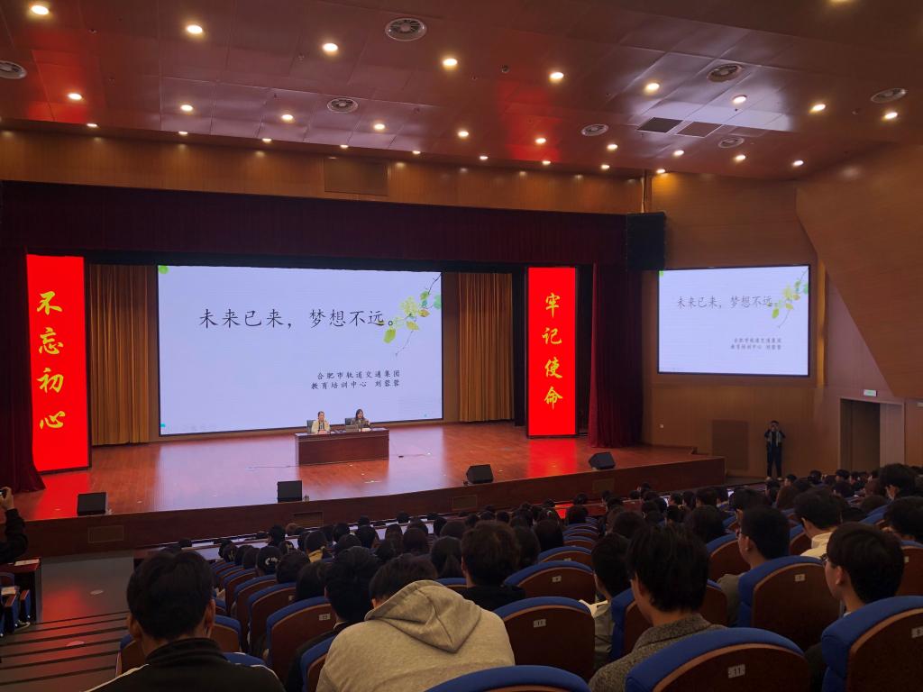 刘蓉蓉从“我们”“成长”和“未来”三个关键词切入,详细介绍了合肥市轨道交通集团目前情况及未来发展规划,结合两名年轻优秀轨道员工的成长经历,让轨道学子们了解未来成为合轨人所应具备的专业知识和职业素养,以及加入轨道公司后个人提升的多线发展平台。讲座中她与同学们热情互动,让同学们更加深入了解了合肥市城市轨道发展规划。