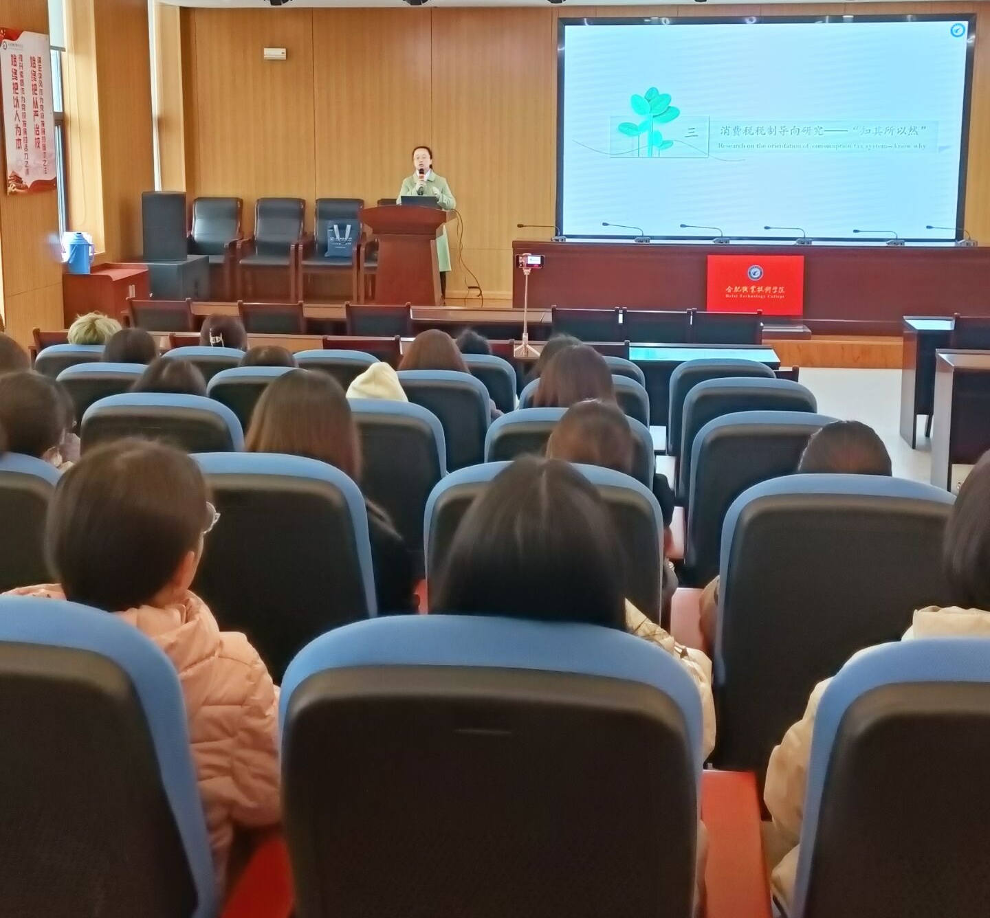 12月8日下午,经贸旅游学院王云副教授在汇心湖校区图书馆一楼报告厅开展了“互联网金融背景下消费税税制导向研究”专场学术报告会,报告厅内师生济济一堂,掌声不断,气氛热烈。