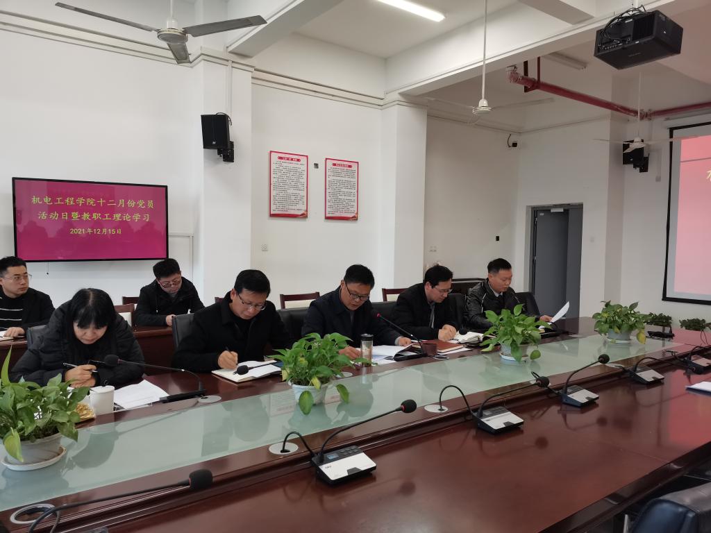 12月15日下午,机电工程学院在机电楼二楼会议室召开十二月份主题党日暨教职工理论学习。校党委委员、办公室主任王海及学院全体教职工参加会议,会议由该院党总支副书记(主持工作)王克勇主持。