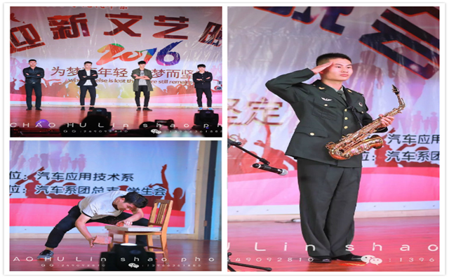晚会节目形式多样,内容精彩。有青春活力的拉丁舞、欧美爵士舞,有退伍大学生展现军人情怀的萨克斯演奏《时间去哪了》,还有汽车系的品牌节目《武术》和《模特秀》,模特的精彩走秀展现当代大学生的青春靓丽风采;九节鞭、双节棍、硬气功等精彩表演让观众现场惊叹不止,更难得可贵的是一名双节棍演员在表演中不小心受伤流血,可他仍坚持完成演出,展现了当代大学生坚持不懈的韧性和责任心,这份精神感染了全场观众,全体为他加油鼓掌致敬。(供稿:汽车系  编辑:敬涓)