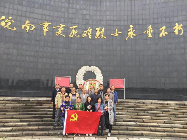 本次红色革命教育考察的第一站是位于皖南泾县城郊的皖南事变烈士陵园。皖南事变烈士陵园,由入口纪念碑、主题广场、主碑纪念广场和无名英雄烈士墓四个纪念性空间序列配以皖南事变史料陈列室有机组合而成,整座陵园以邓小平题写的“皖南事变死难烈士永垂不朽”纪念主碑为中心,结合山形地势,将各纪念建筑组成一个完整有序、庄严肃穆的有机整体。庄严、肃穆、凝重的陵园环境深深感染了每一位党员,在缅怀先烈的同时,先烈们奋斗不息的革命精神也深深融入到每一位党员的心中,激励党员们牢记革命历史,珍惜幸福生活,更好地在各自岗位上发挥先锋模范作用。
