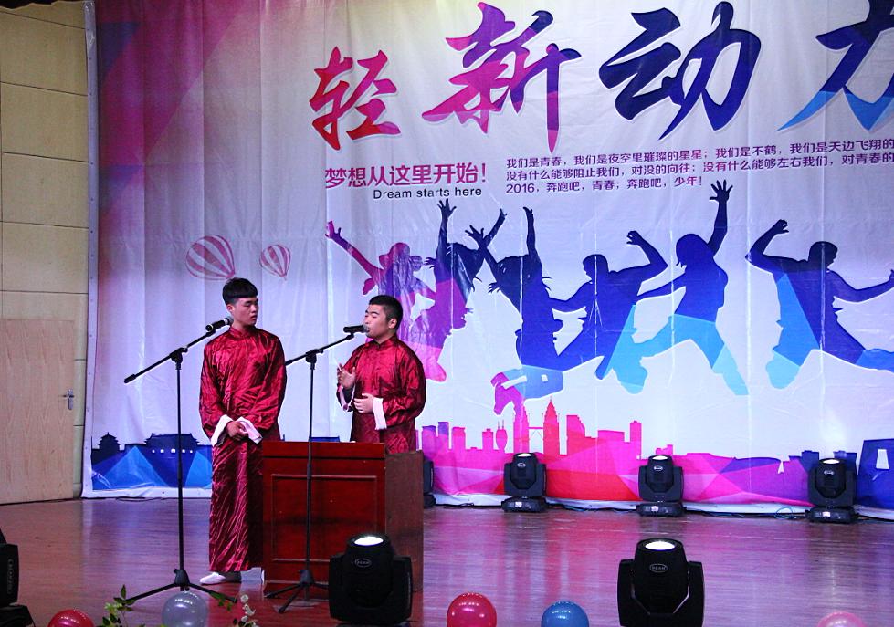 活力四射、青春向上的街舞《breaking》拉开了迎新晚会的序幕。,随后,黄万万同学带来的《一生中有你》唱出了当代青年对自由的追求;祥云嘻笑社带来的传统相声《论规矩》诙谐幽默;灵动娴熟的古典舞《神话》、动感十足的《爵士舞》等节目精彩纷呈、高潮迭起,感染着在场的所有观众。最后,晚会在优美的歌声《明天会更好》中圆满落幕。