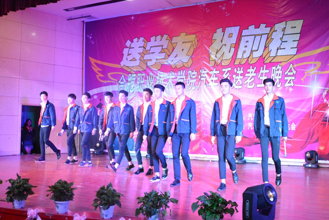 晚会在一群帅气可爱的班长舞中拉开帷幕,节目开始前汽车系主任程师苏上台致辞,表达了老师们对实习生美好的祝福及关爱。