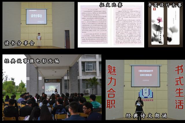 本届读书节开展了启动仪式暨读书报告会、读书分享会、读书征文比赛、经典诗文朗诵比赛、经典故事改编微电影、书签设计比赛、颁奖晚会共七项活动,历史一个月。在这一个月中,同学们与书为友,共享读书的快乐。校园里书声朗朗,书香弥漫,活动取得了预期成效。具体体现在两个方面:一是活动主题鲜明,内容丰富,形式多样。七项内容活动都围绕“读书”这一主题,都通过广大同学喜闻乐见的形式表现出来。二是活动覆盖面广,开展扎实,效果明显。本届读书节覆盖全系在校23个班级每一名同学,既有全系性的启动、表彰仪式,也有班级层面的分项活动。活动开展扎实有效,在全系范围内掀起了读书热潮,取得了积极成果,展现了同学们的精神面貌。