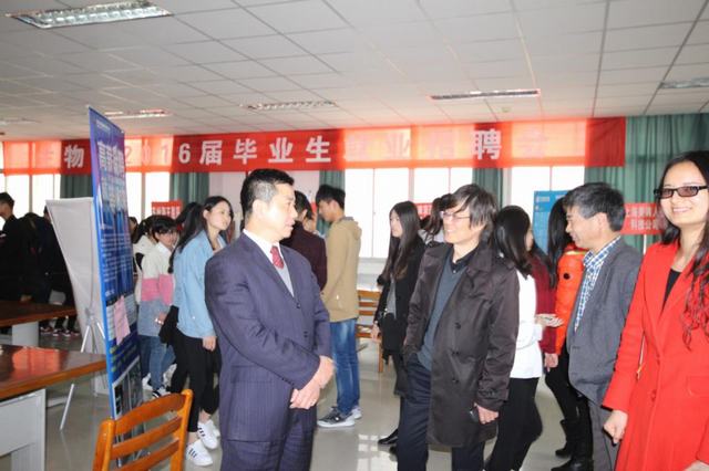 为积极推动2016届毕业生充分就业,搭建毕业生和用人单位双选平台,3月26日上午,生物系在图书馆二楼大厅举办了2016届毕业生专场招聘会。党委副书记胡其云、副院长孙兴林、纪委书记金辉、副院长周晓隆以及院招就处、学工部主要负责人先后到会并指导工作,北大未名、国药控股、华澳检验、海王星辰、合肥远大、庐江血浆站、合肥现代牧业等家用人单位携近600个就业岗位前来招聘。