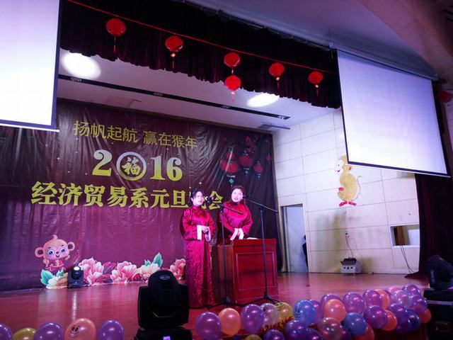 12月29日晚,“扬帆起航,赢在猴年”经贸系元旦晚会在大学生活动中心隆重举行。学院院长方志斌教授莅临晚会,经贸系广大师生共聚一堂,喜迎新年。
