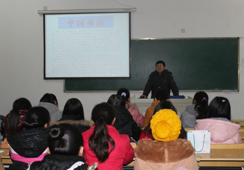 此次培训邀请到了院学报编辑部王少俊老师授课。王老师从我国书法发展的历史、书法理论学习、字型基本结构及如何学好硬笔书法等几个方面做了精彩的培训。针对学生写字特点,王老师采用理论与实践相结合的方式进行了生动地讲解、即席练写和点评验收。王老师的讲座浅显易懂,内容丰富,深受学生们的好评。本次培训共吸引了六十多名学生参加。