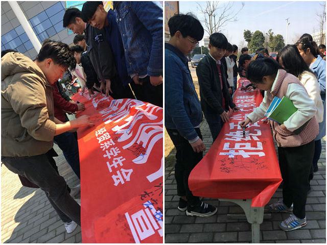 本次活动得到了学院领导、老师、同学们的大力支持,中午11点半后,前来就餐的广大师生在宣传横幅上郑重签名,践行“光盘行动”。志愿者们向全院师生发出倡议:鼓励厉行节俭,坚决杜绝浪费;树立“浪费可耻、节约光荣”的理念,努力做到按需选餐,不剩菜,不剩饭,做“光盘一族”,用实际行动践行雷锋精神。