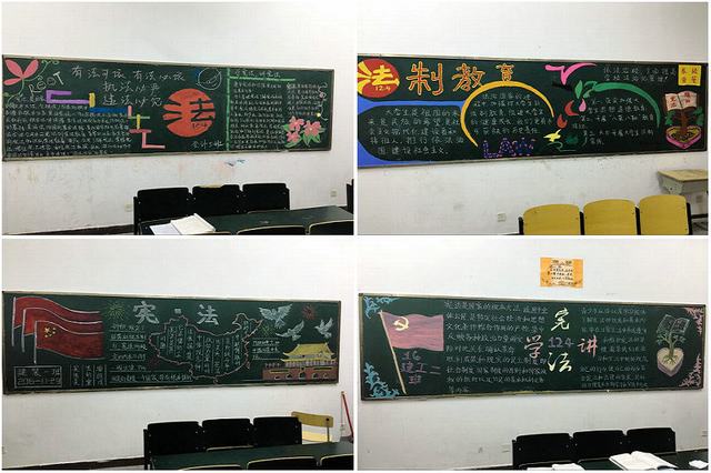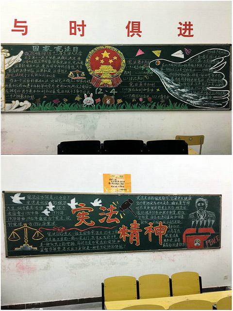 11月25日-30日,经贸系举办了以“学宪法,讲宪法”为主题的黑板报评比活动,此次活动吸引了全系21个新生班级的参与。一幅幅设计新颖美观的黑板报,内容丰富多彩,各班紧扣主题,或从法理,或从历史,或从宪法在依法治国进程中的地位等不同角度,描述了宪法的权威性、原则性,培育和践行了社会主义核心价值观。