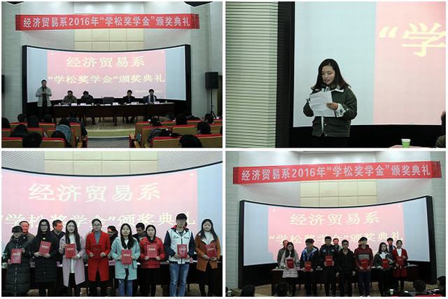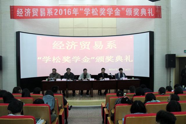 院纪委书记金辉代表学院对经贸系师生提出了殷切希望,希望获奖的同学珍惜荣誉,谦虚谨慎、百尺竿头,更进一步。没获奖的同学要谨记“崇德、重技、求实、创新”的校训精神,努力使自己尽快成为优秀团队中的一员。希望经贸系的广大同学要培养踏实的学习作风,注重健康人格的日臻完善;培养独立进取的钻研精神,注重的团队意识的养成。希望大家以“学松奖学金”设立者潘学松先生为榜样,以感恩的情怀面对身边的人和事,志存高远,奉献社会。(供稿:经贸系  编辑:朱鹏飞)