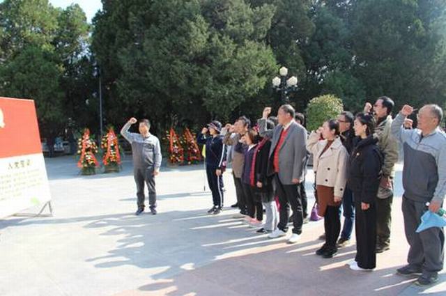 5日上午,全体党员参观了全国著名的金寨县红军村,在革命烈士纪念塔前敬献了花篮,并在胡其云同志的带领下重温了入党誓词。