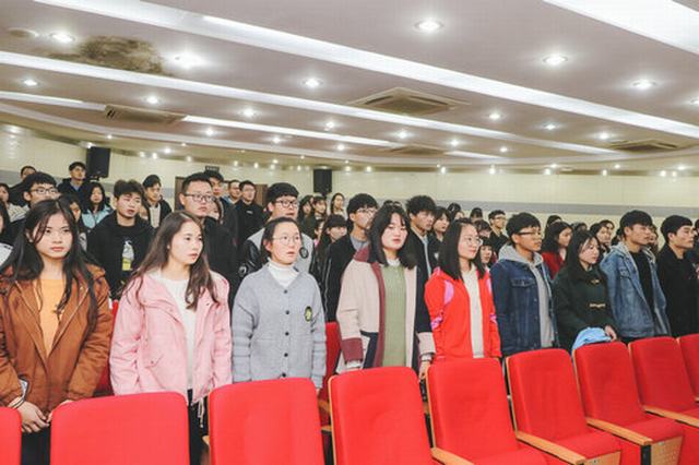 开班仪式结束后,孙兴林副校长以《坚定理想信念,不忘初心跟党走》为题,为全体学员上了第一堂党课,带领大家深入学习了习近平总书记在中国共产党第十九次全国代表大会上的报告内容。围绕新时代、新思想、新战略三个关键词,孙副校长要求全体学员准确把握新时代的历史方位,深刻领会新思想的精神内涵,强化使命担当,把思想和行动统一到以习近平同志为核心的党中央决策部署上来;围绕建设健康中国、美丽中国的目标,孙副校长要求学员在倡导健康文明的学习和生活方式上起表率作用,从我做起、从现在做起。最后,孙副院长希望全体学院谨记习近平总书记在十九大报告中对广大青年给予的厚望:坚定理想信念,志存高远,脚踏实地,勇做时代的弄潮儿,在实现中国梦的生动实践中放飞青春梦想,在为人民利益的不懈奋斗中书写人生华章!(供稿:经贸旅游学院 编辑:沈婉婉)