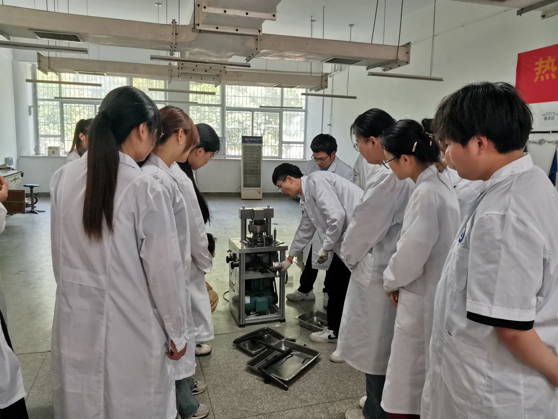 为贯彻落实“深化产教融合,赋能美好安徽建设”职教周主题精神,5月22日下午,生物工程学院在鼓山校区药物制剂实训中心开展“药物制剂压片技术”科普体验活动。本次活动集中展示现代制药技术和制药设备,涉及模拟药品生产企业的片剂岗位、胶囊制备岗位和包衣岗位及其关键设备旋转压片机、全自动胶囊填充机及片剂高效包衣机等实操内容。生物工程学院第一党支部范高福工作室“双带头人”范高福、韦梦强两位老师担任讲解员,接待校内园林类专业、食品类专业及其他专业参观人员80余人次。