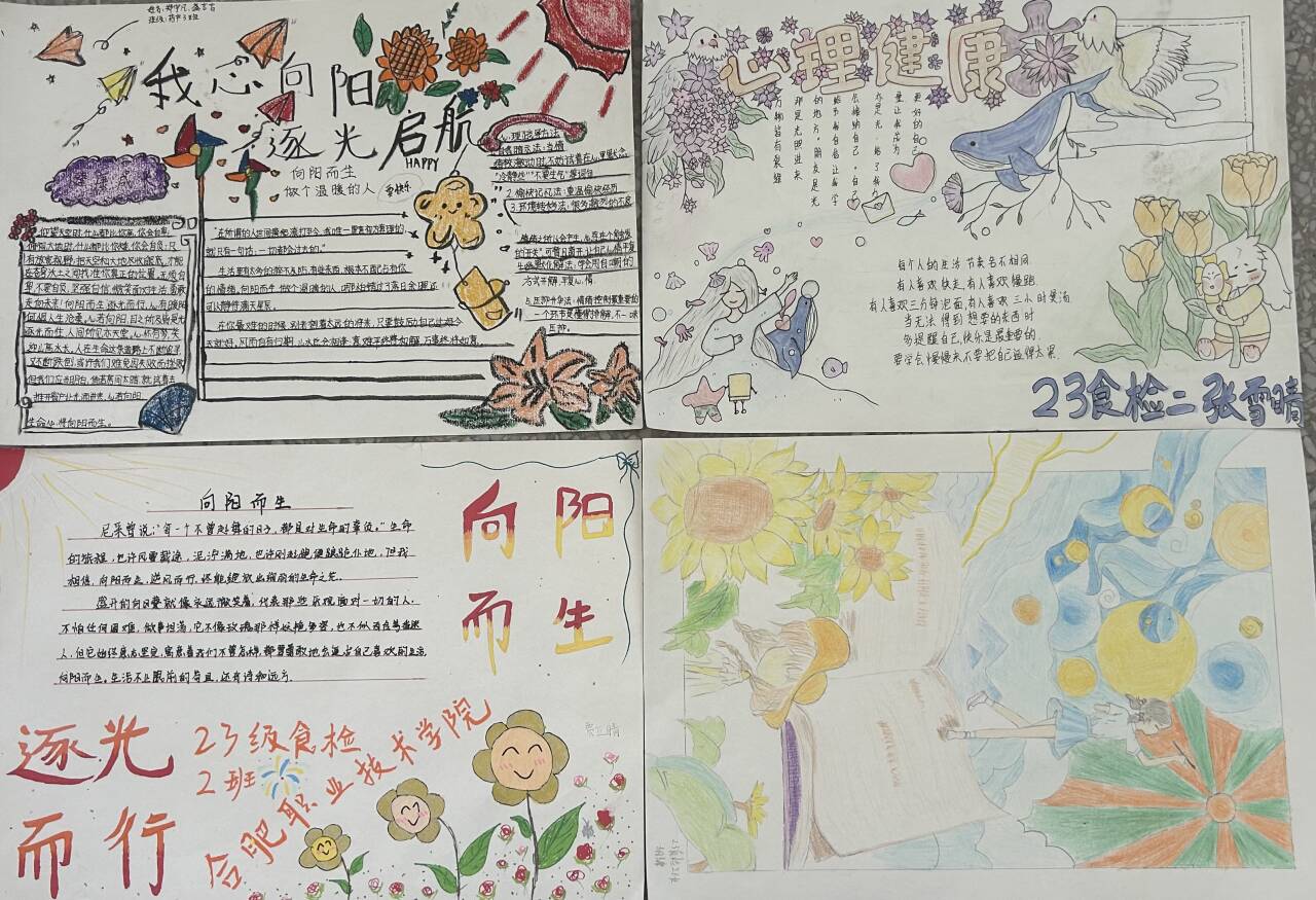 活动四:“我心向阳 逐光启航”——心理手抄报活动。鼓励同学们在画纸上表达心理世界,让同学们在搜集、书写、设计的过程中学习心理健康知识,通过展示传递心灵的力量。