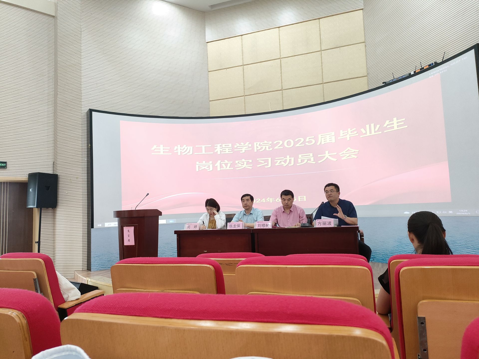 根据教学计划安排,为做好2025届毕业生的岗位实习工作,生物工程学院于6月5日下午,在鼓山校区图书馆二楼报告厅召开2025届毕业生岗位实习动员大会。此次会议采用线上线下结合的方式进行,会议由学院副院长方丽波主持,参会的有学院党政班子成员、实习管理负责老师,2025届毕业班全体同学(部分同学参加线上直播会议)。