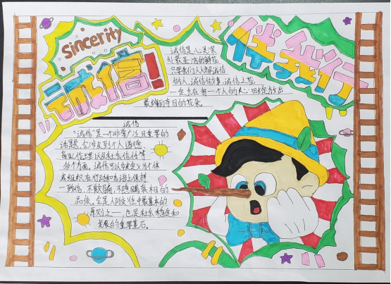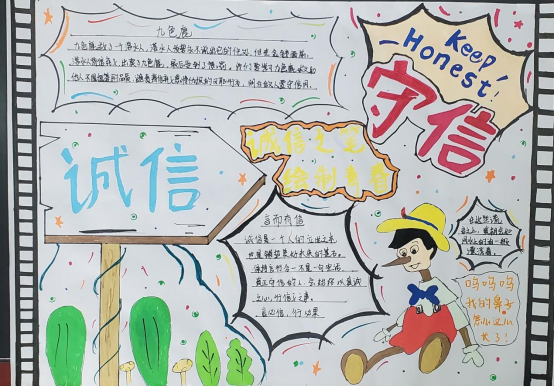 活动期间,同学们积极响应,纷纷投稿。每一幅手抄报都凝聚了他们的心血和智慧,通过文字、图画、色彩等多种元素,作品生动形象地展现了他们对诚信美好品质的理解和尊重。这些作品不仅展示了学生们的艺术才华,更体现了他们对诚信品质的深刻认识和真挚追求。
