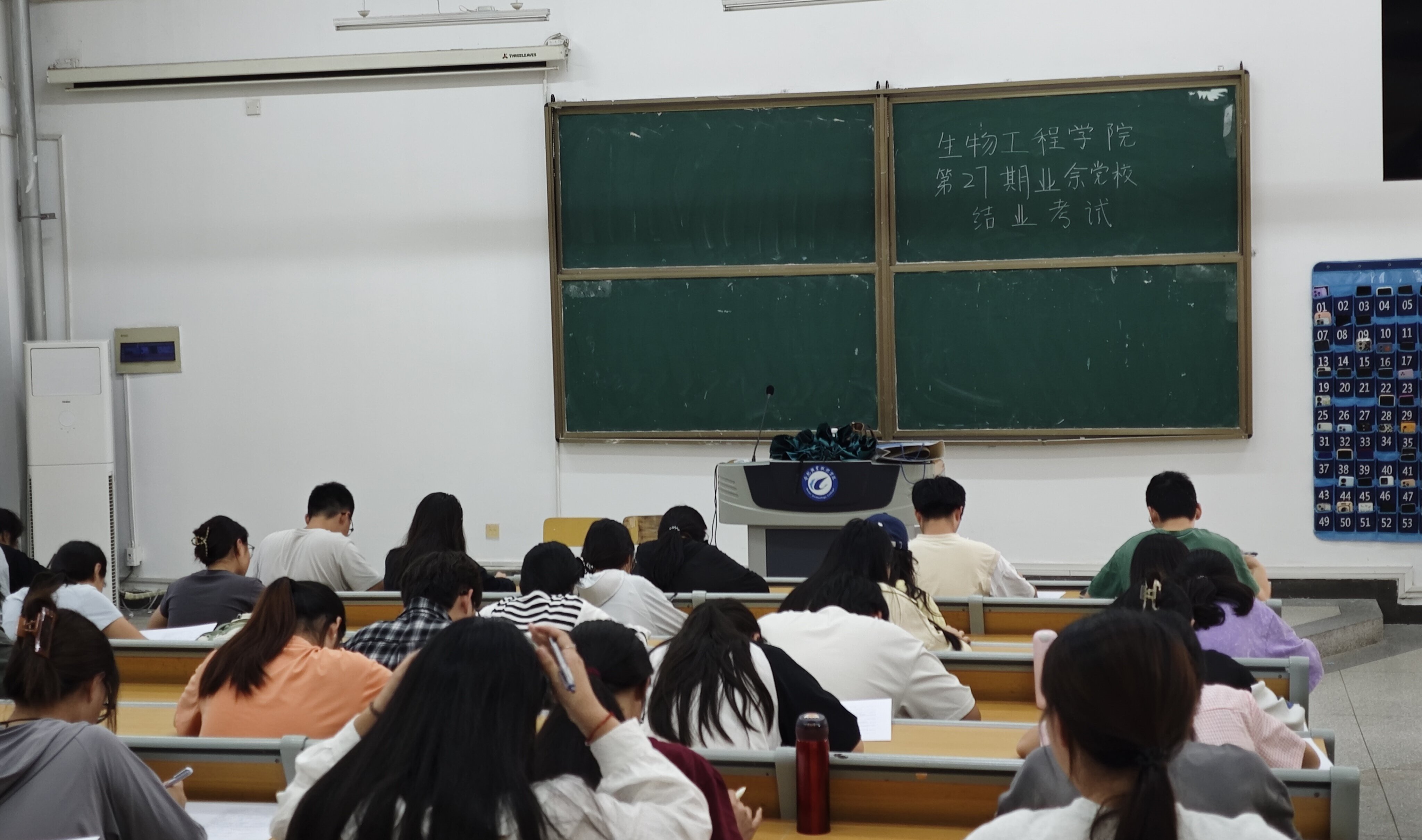 为深入学习习近平新时代中国特色社会主义思想,进一步提高入党积极分子的理论素养,考察入党积极分子的学习情况, 9月25日下午,生物工程学院第27期业余党校结业考试在教学楼A一阶教室顺利举行。整个考场秩序井然,全场气氛庄重严肃。