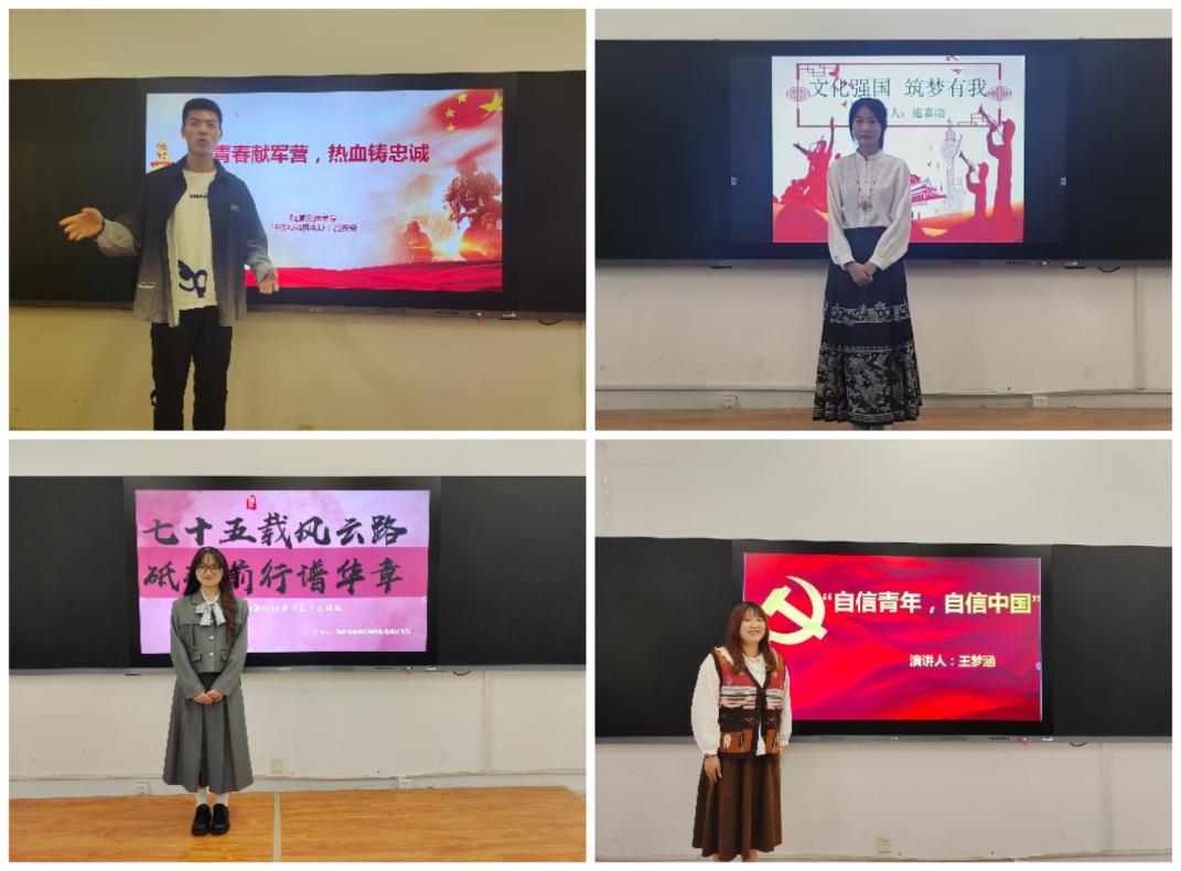 为庆祝中华人民共和国成立75周年,加强青年思想政治教育,传承红色基因,轨道交通学院于10月9日在轨道楼309举办“自信中国,自信青春”新生主题演讲比赛。